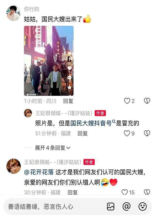 再说说瑾汐的大嫂,前次删视频的操作,让不少东谈主迷糊涂糊。这回终于更新了,一张衣服防晒衣站在雕像傍边的像片,配景看着像是在街上,揣度是老迈给拍的,小两口这是在压马路呢。像片一出,立马有善事网友跑到小姑妈的研究区里“认亲”,着力小姑妈平直辟谣,说这是假冒的,还艾特了真大嫂的账号,辅导群众别搞错了。这年初,冒牌货竟然防不堪防啊。